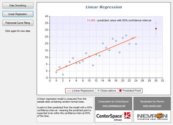 Experience the power of Nevron Chart and NMath working together now by downloading the visual studio example project below. See how easy it is to integrate fundamental data analysis operations like data smoothing, polynomial fitting, or linear regression, with crystal clear visualization. Jump start your .NET project today by leveraging these two world class .NET libraries together.