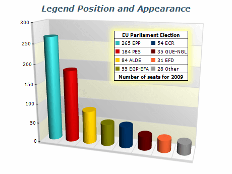 information, palette or data point values, series names, and others. The control also supports many legend customizations such as header