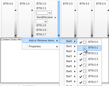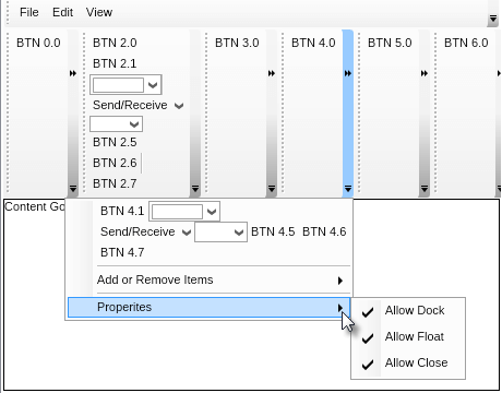 | Command bars are widgets, that consist of a gripper, pendant and an items collection. You can place any widget in the items collection of a command bar. |